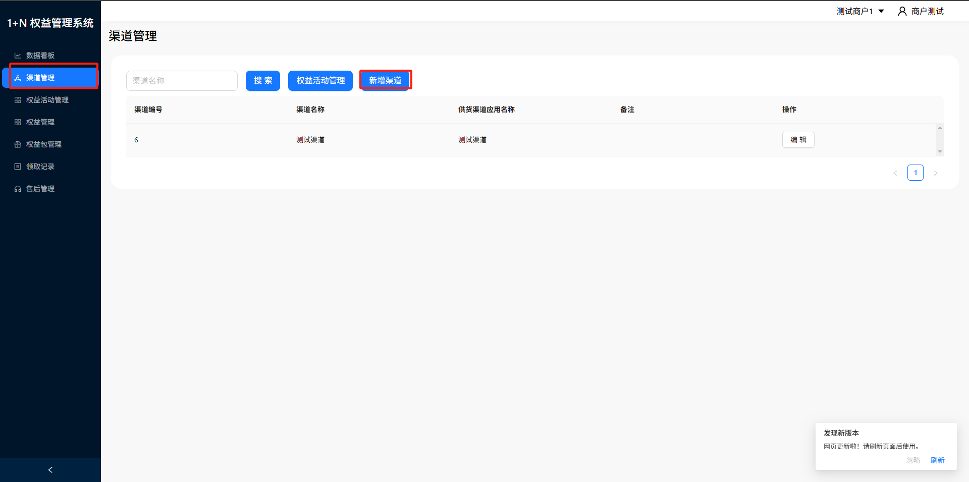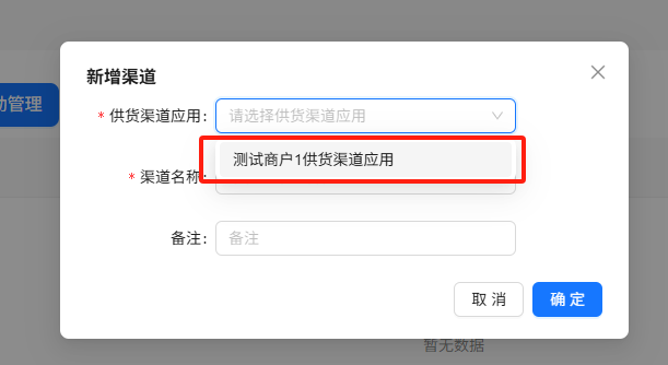 3. 选择供货渠道应用,新增渠道,该渠道为对应的销售渠道