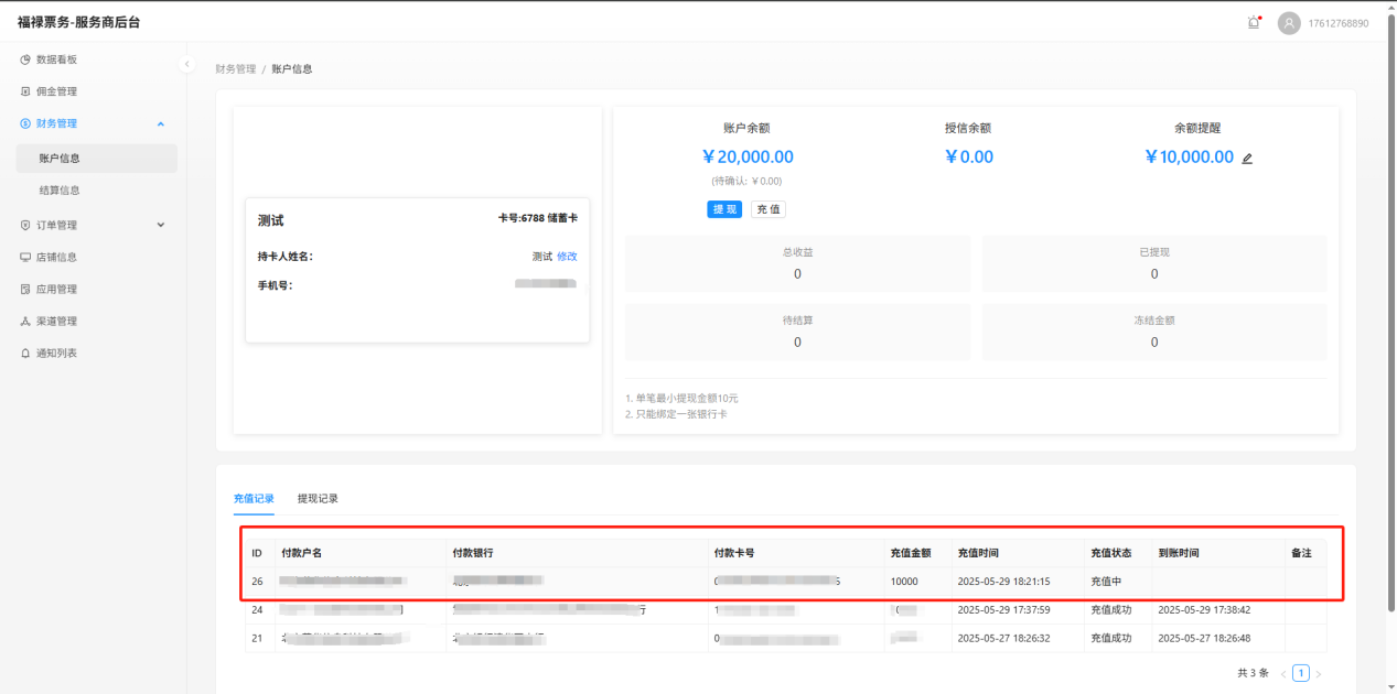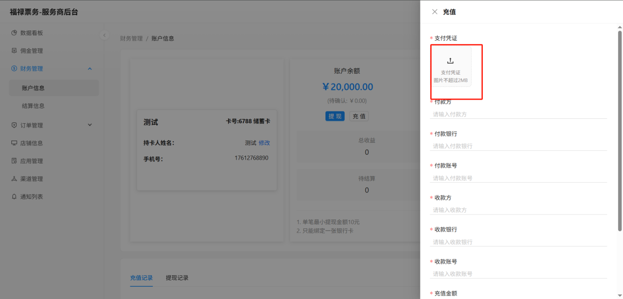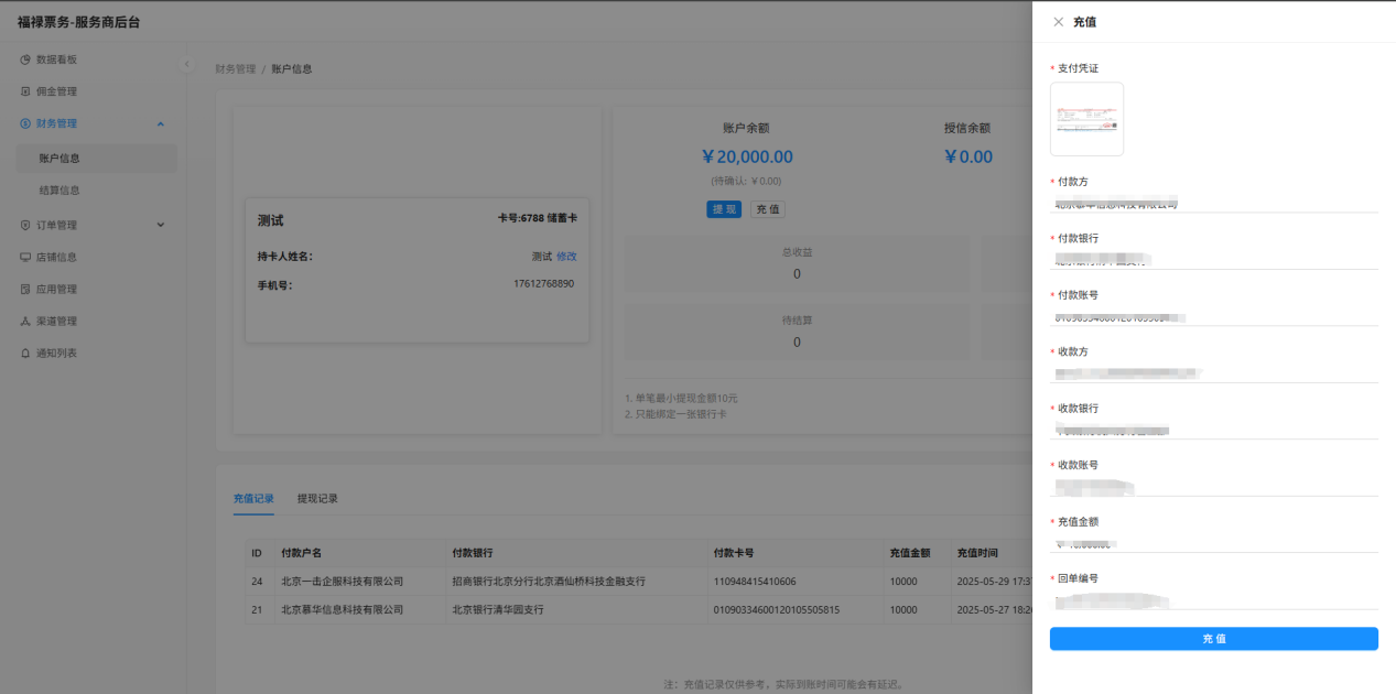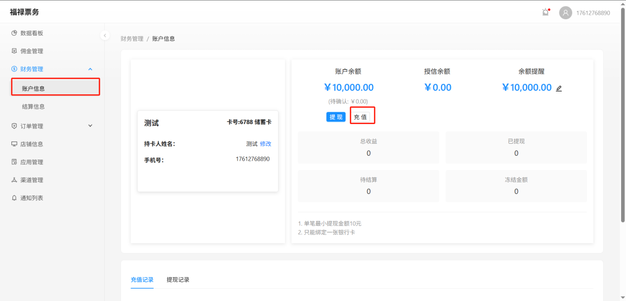 财务管理--账户信息--充值